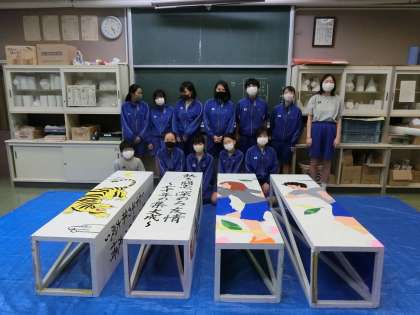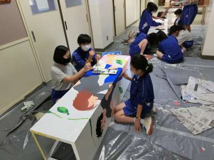 学習発表会(体育)のために美術部が入退場門を作ってくれました。部員が協力して下地から丁寧に色をぬり作品を創り上げてくれました。