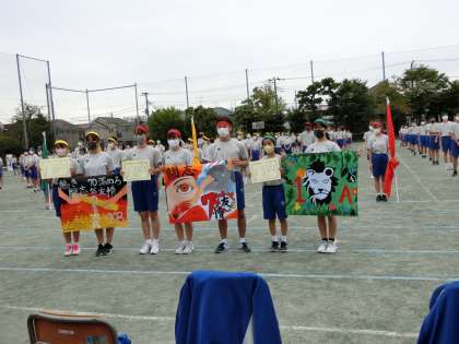 結果発表は、お子様よりお聞きください。最後に校長先生より好評をいただき無事終了しました。生徒会種目の玉入れや70周年記念種目は、別の機会にお見せできればと思っています。