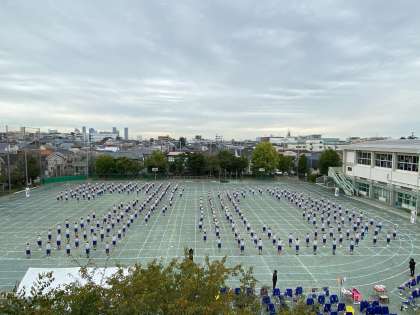 70の一文字をみんなでつくりました。屋上からI先生が撮影したものです。