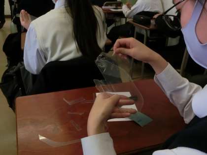 都立六郷工科高等学校、デュアルシステム科の先生より2Aと3Aは、フェイスシールドの作り方を受講しました。お土産にフェイスシールドもいただきました。是非、活用して欲しいと思います。