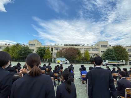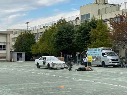 11月7日(土)「自転車安全教室」が行われました。スタントマン「Shadow」さんの、リアリティあふれる演技は、日頃の自分の自転車の乗り方や、公共機関での歩き方など、振り返る良い機会となりました。生活委員会の生徒が、自転車の乗り方の良い例を披露するなど、楽しい中にも、深く考えさせられる安全教室となりました。