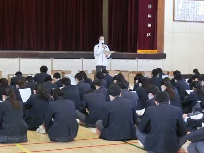 遅くなりましたが、尾山台ルールが決まりましたので12月21日(月)、3年生に学習用タブレットを配布しました。配布物として、タブレット一式(iPad・ACアダプター・カバー体系キーボード)学習用タブレット端末の利用について(生徒用・保護者用)、確認書を渡してあります。3月には、タブレット一式、箱も含めてすべてのもが返却となります。大事に有効かつ大事に扱って下さい。保護者の方も目を通していただければと思います。なお、確認書は、12月24日(木)までに担任へ提出をお願いいたします。