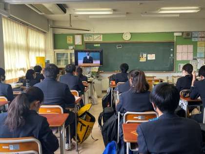 本日も、Zoomを使って、生徒会朝礼が行われました。