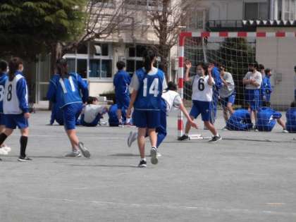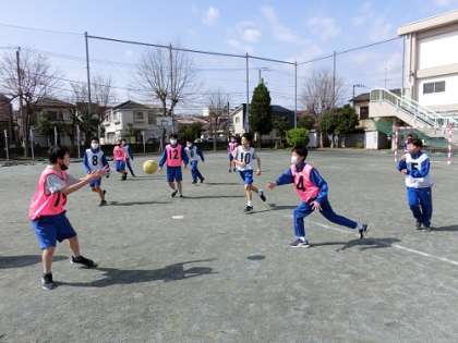 球技はハンドボールとドッジボール。クラスの仲間と励まし合い、競い合う姿が印象的でした。体育委員が中心となり自分たちで運営する様子に成長を感じました。
