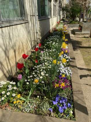 桜ふぶきも吹きやみ、葉桜が元気に芽吹いています。(写真は4月1日撮影)