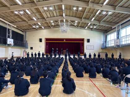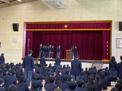 認証式は生徒会の役員と各委員会の委員を校長と生徒会が認証する式です。