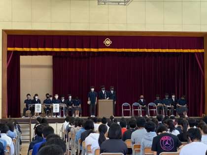 はじめに、校長先生から、「関心をもつこと、全体のことを考えて発言、提案をすること、義務と責任」についてお話がありました。