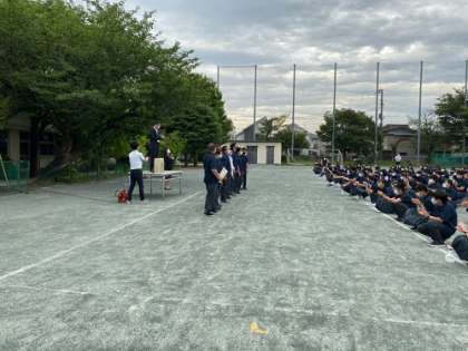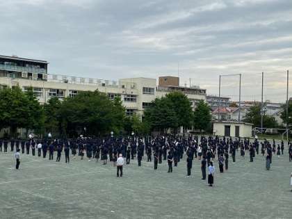 本日は校庭で全校朝礼を行いました。始めに校長講話がありました。続いて、表彰式が行われ、活躍を皆で称えあいました。その後、生活委員長、美化委員長からの週番報告がありました。最後に生活指導主任より、6月は「東京都ふれあい月間、相手の立場に立った言葉がけや行動を意識しよう!」とお話がありました。3年前に、本校生徒会で制定された「いじめ防止7カ条」教室に掲示され、生徒手帳にも記載されています。「ふれあい月間」の6月、今一度読み返し、みんなが気持ちよく生活できる「樂校」を目指していこう。