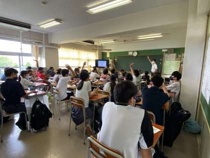 森先生からの質問に答えたり、各学年代表が興味深い質問をして、お答えいただきました。Zoomを使ってのオンライン授業は、その場で講演していただいているかのようで、教室との会話のキャッチボールで盛り上がる様子が印象的でした。