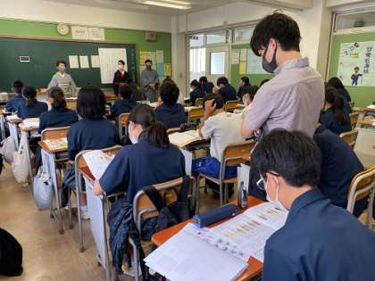 6月17日(木)、2年生各学級にて「教科日本語 日本文化〜衣〜着る」の授業が行われました。