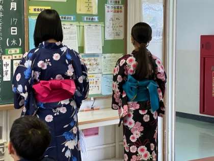 「かっこいい」「かわいい」と思わず声があがり、ゆかたの素晴らしさを再確認する楽しい授業となりました。着物だけではなく、日本文化を大切に継承し、発信できる力を育んでください。