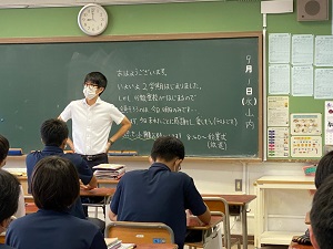 「緊急事態宣言が9月12日まで発令されていることをうけ、3日から分散登校・オンライン授業となりますが、朝の検温やオンライン授業の準備と参加について前向きにとらえ取り組もう」とお話がありました。