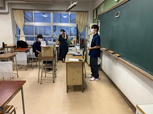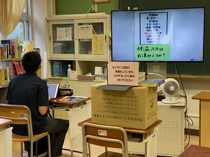 本日より、分散登校が始まりました。朝学活の様子です。夏休みはチームスやロイロノートの研修を深め、先生たちも少し緊張気味にスタートしました。離れていてもつながっている。みんなで乗り越えよう。
