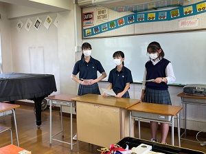 本日の生徒会朝礼は、国際理解室より各教室に向けてオンライン(チームズ)で配信されました。