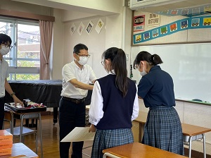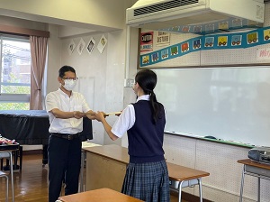 新体操 第60回東京都中学校総合体育大会「新体操個人総合入賞」全国大会出場を果たした功績を称え、校長より賞状が授与されました。