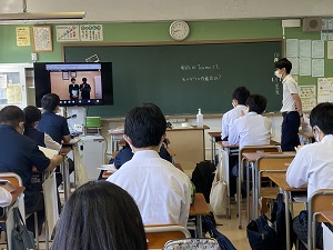 続いて、生活指導主任より「衣更え移行期間」について「その日の気候などに注視し、自分で考えて服装を整えよう。冬服に向けてバッジの確認などもしておいてください。引き続きコロナ対策をしていこう。」とお話がありました。