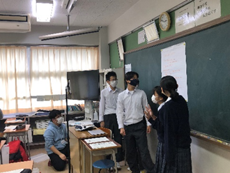 どの班も面白いアイディアを考えてくれ、クライアントの方も中学生らしい発想や、思いもよらないアイディアに驚いていました。しかし、クライアントの方からは課題も指摘していただきました。発表の時の声の大きさ、姿勢をしっかりとすること、プレゼン内容を伝えたい人に向けてしっかりと話をする事(今回は教室の後ろにクライアントの方がいました)ができると、もっと良かったとおっしゃっていました。プレゼンの内容も大切ですが、社会に出てからはプレゼンに臨む姿勢や熱意も重要ということですね。