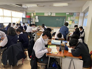 11月2日(火)5校時、2年生A・B・C・D組で研究授業を行いました。その後、研究協議も行われ、指導主事の先生方から、指導・助言をいただきました。