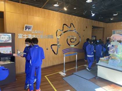 富士湧水の里水族館を出ました。班別行動で学習し、河口湖周辺の生態について楽しみながら学びました。