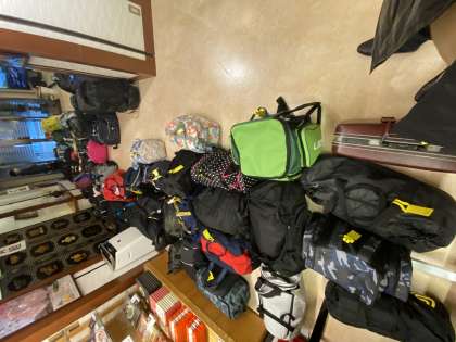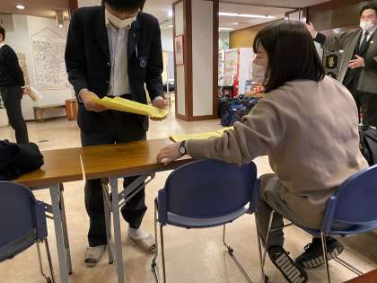 おはようございます。修学旅行3日目、大きい荷物をロビーに、検温カードをチェックしています。