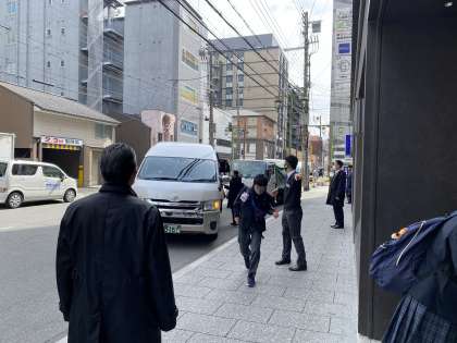 タクシー班別行動を終え、昼食場所に到着。運転手さんにお礼を言い、見送りました。