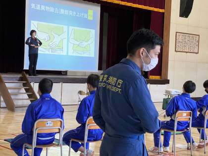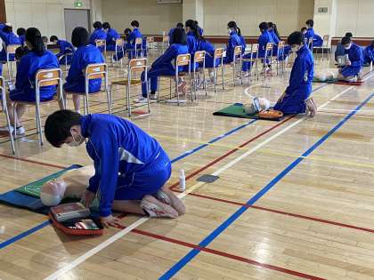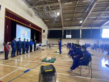 3月12日(土)3年生を対象に、消防署、等々力街づくりセンターの皆さまをお迎えし、救命救急講習が行われました。救命の基礎的な対応、AEDの使い方など実践的な講演を受け、受講者には救命講習認定書が渡されました。