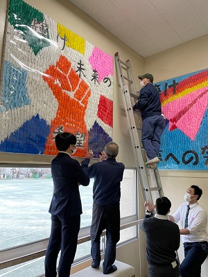 明日は第71回卒業式です。1・2年生の係生徒が中心となり心を込めて準備をしてくれています。本年度の生徒会主催「卒業を祝う応援メッセージ」は「輝け未来の希望」です。1・2年生が3000羽の折鶴で表現してくれました。素晴らしい卒業式となりますように。