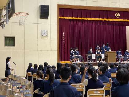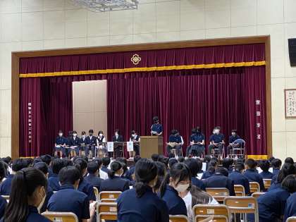 「関心を持つこと、全体を考えて発言、行動すること、義務を果たすことで権利を得ること」校長先生より励ましのメッセージが送られました。