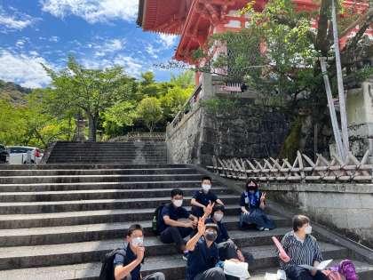清水寺チェックポイントの様子です。暑さもあって、ちょっと休憩!