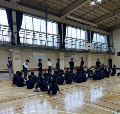 本日10/5(水)5時間目に体育館で前日指導を行いました。