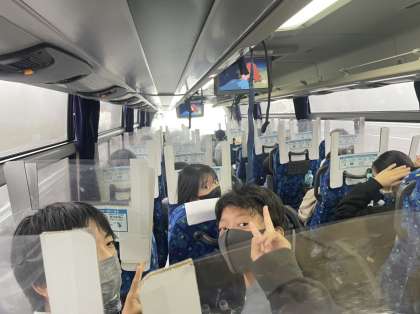 バス車内では感染防止対策もあり、各クラス映画鑑賞です。