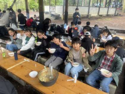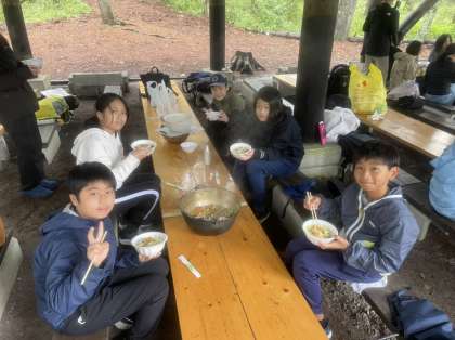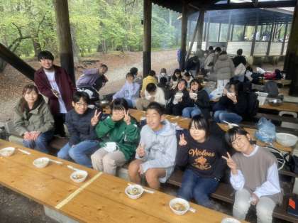 冷たい雨が降り続けていますが、みんなアツアツの「ほうとう鍋」をハフハフしながら美味しく食べてます!