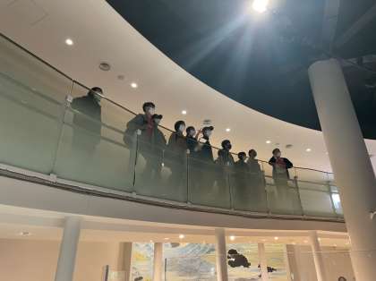 A組を3つのグループに分けて、ガイドさんの説明を聴きながら回っています。