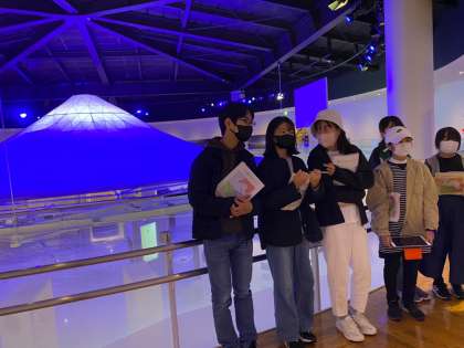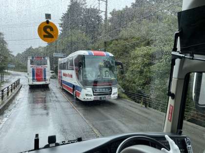 1年河口湖25「AB組とC組のバスがすれ違いました!」