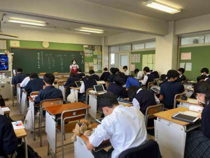 10月13日(木)、2年生で手紙の書き方講座を行いました。職場体験でお世話になった方々に、1人1枚はがきのお礼状を書いていきます。
