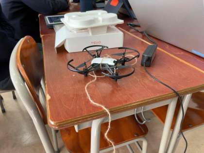 【2年技術】プログラミング学習でドローンが飛びました。