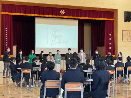 12月9日(金)、第1学年の道徳科授業で、ウェルビーイング特別授業、「スーパーハッピーバースデイ」が実施されました。東京都市大学の先生や学生の皆さんを講師に迎え、自分のウェルビーイング(心地よい状態)を考えたり、友達のウェルビーイングについて考えながら誕生会のプランを考えたりしました。授業後の感想では、「自分について改めて考えることができて良かった」「友達の意外な一面を知ることができて良かった」などの意見がありました。