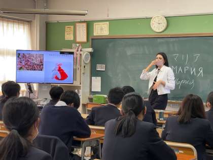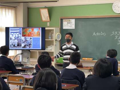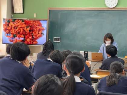 1月13日(金)、国際理解教育の一環として、第2学年で特別授業「留学生は先生」を行いました。この日はA組にブルガリアから、B組にフィリピンから、C組に中国からそれぞれ留学生の方をお迎えし、それぞれの国の歴史・文化・言葉などを教えていただきました。生徒の皆さんが一番興味深く聞いたのは、やはり食べ物、好きな芸能人などの身近な話題だったようです。