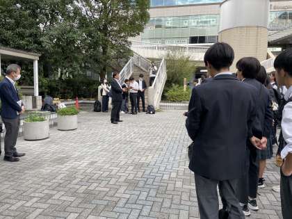 肌寒い気候の中、予定より10分早く集合し、出発式が行われました。