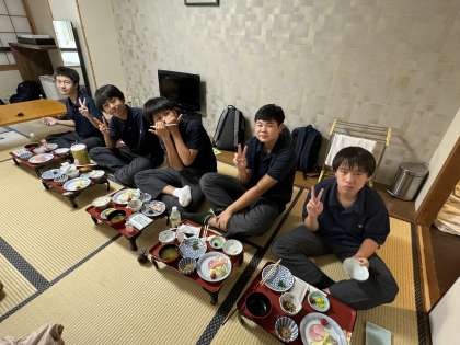6時50分、お膳で運ばれた朝食を各部屋に準備し、7時20分予定通り食べ終わりました。