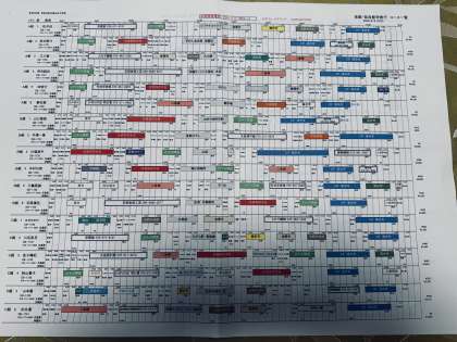 この18通りの計画は、添付した写真のように全て分刻みで決定されていて、私たち教員が全てコントロールしています!