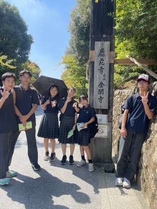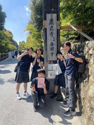 どの班も暑さと疲れを全身で感じつつも、金閣寺の美しさと迫力には圧倒されたようです。」