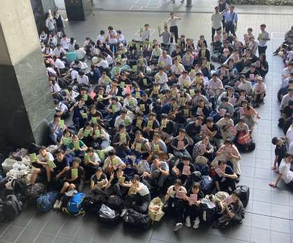 そんな時、隣にいた学校が全員集合写真を撮っていたので、こちらも思いついて集合写真を撮りました!