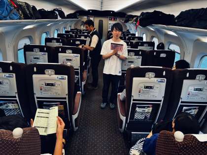 現在、新幹線内の各車両で終学活を行い、品川駅に到着しました!