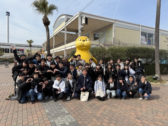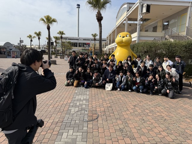 八景島シーパラダイスの「シーパラシー太くん」の前で記念撮影です!
