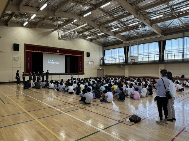 尾山台小、玉堤小の6年生が尾山台中学校に訪れ、授業見学や学校紹介、部活動体験に参加しました。