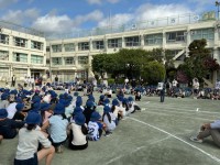 ゴールに到着し、バスに乗るまで少し時間があったので、担任の先生方がクイズを出して...