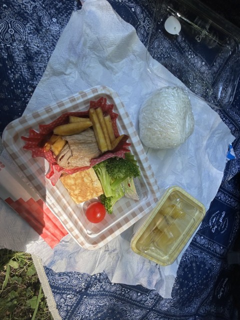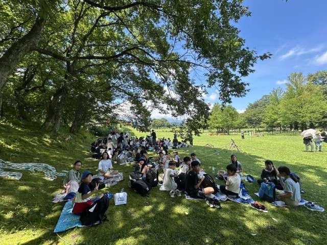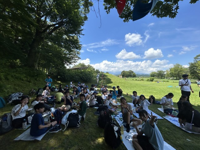 お昼タイムです。暑いですが、木陰はさわやかです。おいしいお弁当の準備ありがとうございました。