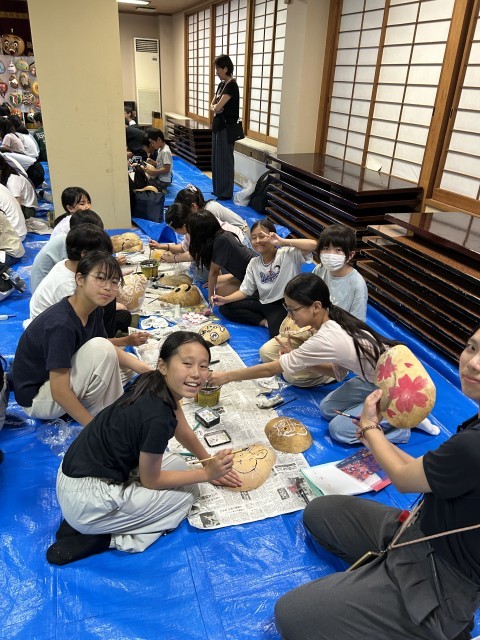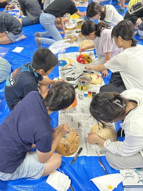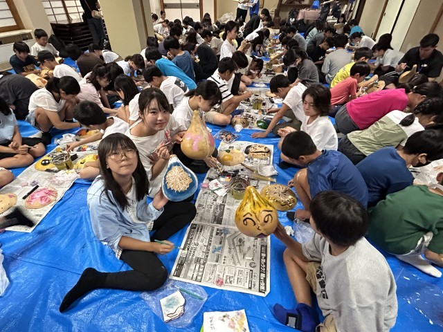 開室式が終わり、ふくべ細工体験が始まっています。みんな個性豊かです。