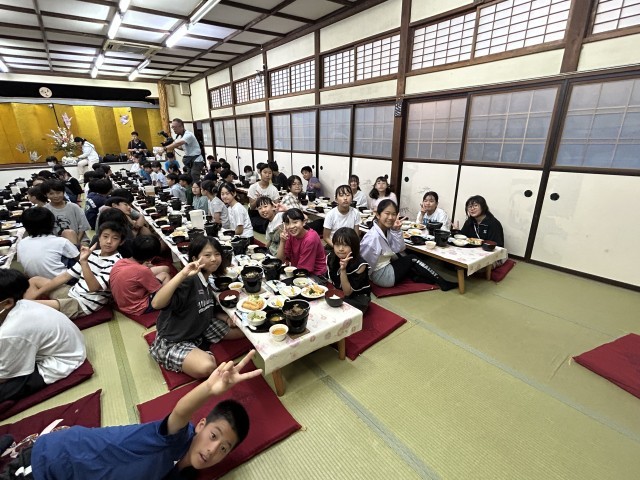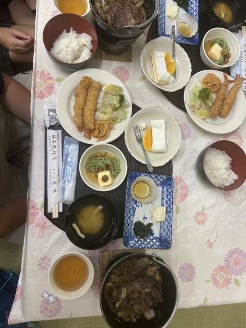 待ちに待った夕ご飯です。みんな美味しそうに食べています。